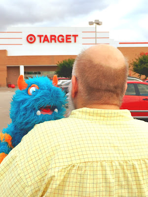 Then we shopped for a few more things that seemed boring to a little blue and orange furry monster. I just looked around at all the people while Mr. Guy and the Lady filled the cargo compartment of my monster mobile. I found lots of people to smile and wave at. We even saw one of Mr. Guy’s students from his school.