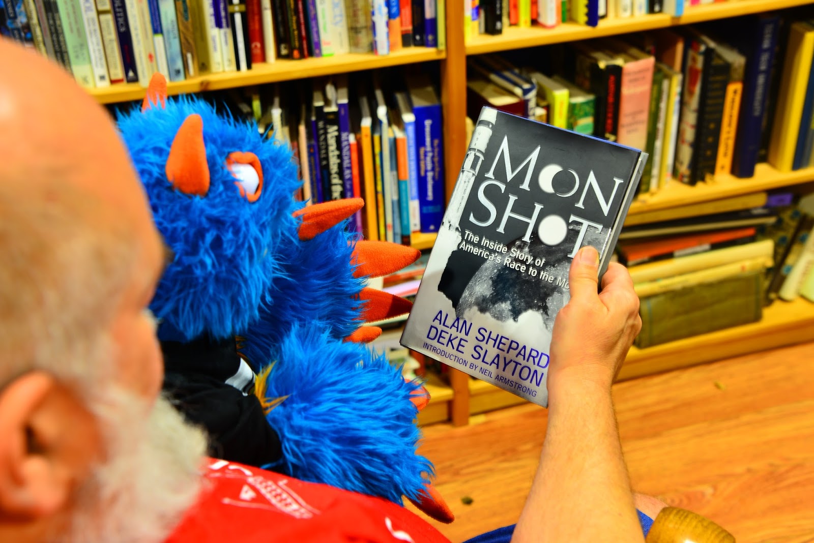 Mr. Guy told me that when he was growing up, people flew in rockets into space all the time. He remembers when a guy named Neil Armstrong stepped on the moon for the first time. That was way back in 1969. That was a long time ago! I’ve seen the moon when I have been outside at night in my backyard and it does not look big enough for a rocket ship and a man to stand on. Mr Guy says the moon is really a long way away. Really it is big. It took three whole days for Astronaut Armstrong and his friend Astronaut Buzz Aldrin to get to the moon. That is why it looks so small from here! Mr Guy even got to meet an Astronaut once. That was Astronaut Alan Shepard. Astronaut Shepard was the first American to go into space. He went to the moon once too! Astronaut Shepard wrote a book about his life and was in Dallas signing copies of it for people. This is how Mr. Guy got to meet an astronaut. He went and got a copy of his book! Mr. Guy read some of it to me tonight. He says that over the summer maybe we can read the whole thing together!