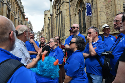 In the afternoon the singing people did their concert. It was really good. I had never heard them sing before. I was a little worried that they would not let blue and orange monsters in to the concert. The cathedral people were very nice. A couple of them asked Mr Guy all about me. He told them how I go places and have this blog. They thought that was great! So I got to go. When we got to the chapel where the singing people were going to do their concert, there was some blue there. The Chapel was called The Lady Chapel and the blue lady was The Virgin Mary.