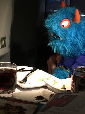 Today we had breakfast in the hotel. The Lady said that breakfast was served every morning in the hotel! I thought it was nice of them to give us breakfast everyday. Blue and Orange monsters need to start their day with a good breakfast.
