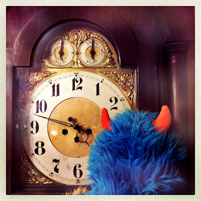 We have a great big clock in our dining room.  It is called a grandfather clock.  We don’t have a grandmother clock or a grandchild clock.  I wonder if the grandfather clock gets lonely just sitting in the corner all day every day just counting the seconds, minutes, and hours .  That clock has been at our house for a long time, longer than me and also longer than The Lady.  It’s been here since Mr. Guy was a little monster like me.  Mr. Guy said that our grandfather clock was given to his father by his grandmother…that is all very confusing!  Why is it not a grandmother clock, then?  Or maybe a grandchild clock since Mr. Guy is the grandchild and now the clock is his?  Oh well, I guess it doesn’t really matter what you call it.  All I know is that it is a great big clock and I like to watch how it counts the time by swinging its pendulum back and forth.