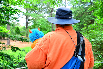 Saturday was a special day at the garden.  They were celebrating the 5th anniversary of the Korean Bell Garden so there were speakers, and microphones, and a podium set up for the people who were going to talk.  We did not stay at Meadowlark Gardens long enough to hear the presentation.  I did take a minute to see what it would feel like to stand at the podium and pretend like I was talking to a whole crowd of people.  Maybe someday, I will become a politician.  If I do, I will be an honest one who does good things for all people…and monsters, even the monsters who have different colors of fur than I do.