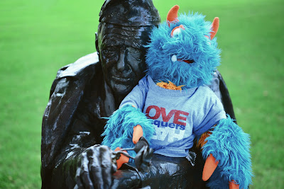 The weather was perfect to be outside – not too hot and not too cold for this blue and orange furry monster.