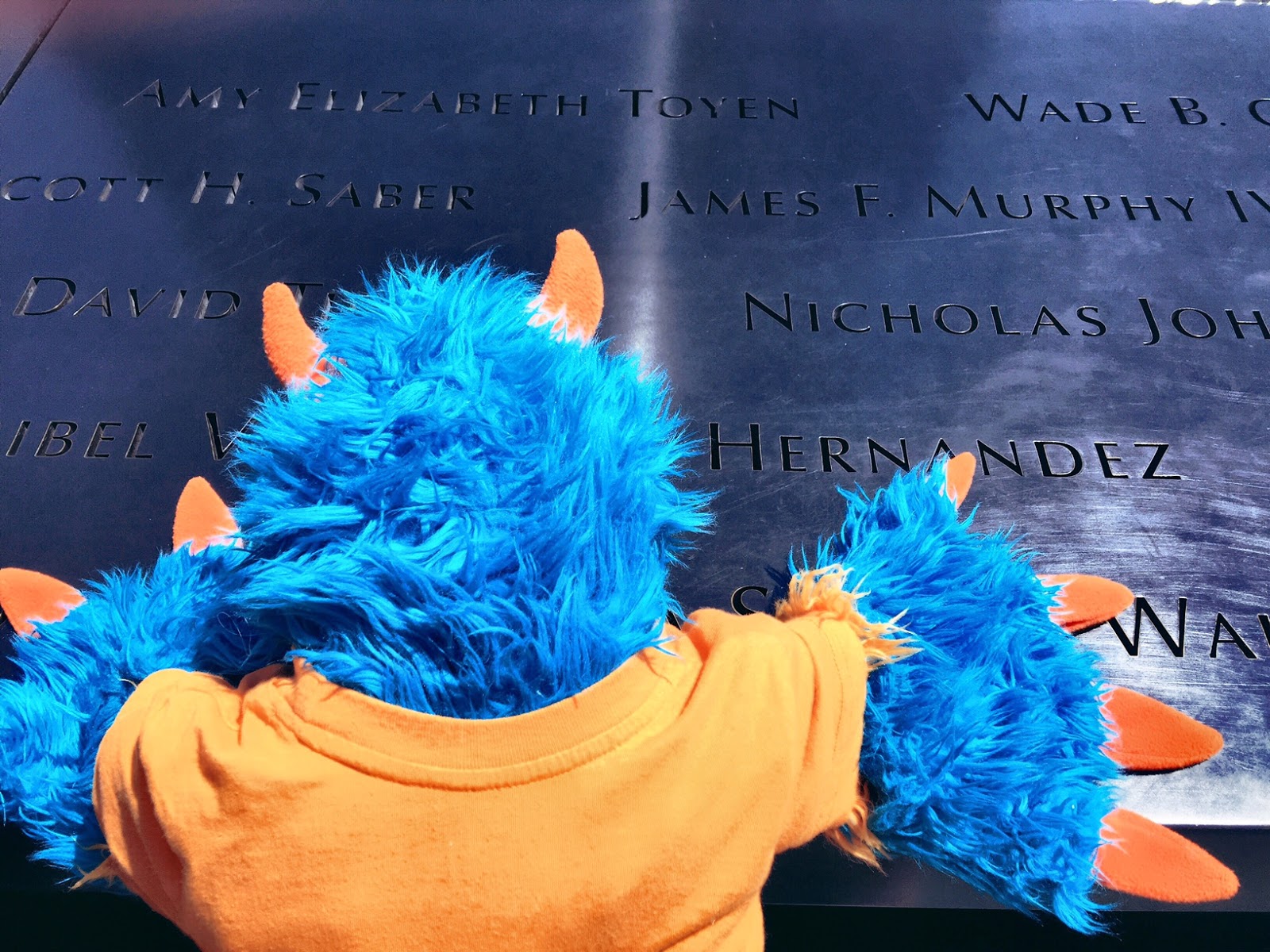 It hurts my heart to think about that day in 2001.  I wasn’t even alive back then and seeing this memorial sends chills down my furry spine.  I can’t even imagine what it must have been like for all the people who were right here in New York City or even those, like The Lady, Offspring #2, and Mr. Guy, who watched it all on television.  The people who’s names I read on the memorial here and their families now have a place in my heart forever.