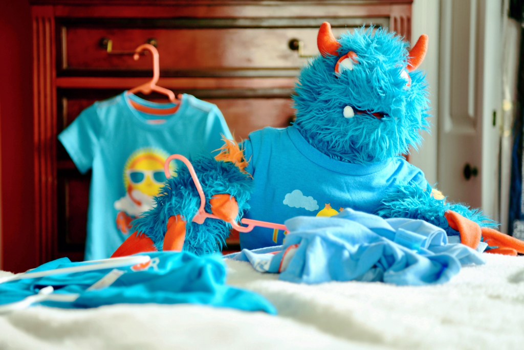 One of my favorite things to do is to collect t-shirts.  I have one from every place that I have visited.  I have several that have been gifts from friends that know I love t-shirts.  T-shirts make a perfect souvenir and also the best gift, at least for this furry little blue and orange monster.  And they are also the perfect clothing.