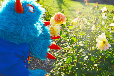 When we got to the Space Needle to buy our tickets, they said it would be two hours before we could ride up the elevator. That is how you get up high so you can see the city. While we waited, Mr. Guy and The Lady took me to the Chihuly Gardens. I asked them what grew in the Chihuly garden. The Lady said it was a glass garden. They grow glass?, I thought. That sounded a little strange to me. The Lady told me that it is a glass sculpture garden. Dale Chihuly, the glass artist, makes all kinds of beautiful shapes with colored glass. I was a little nervous to go to a place where everything is glass. I am a careful monster, but I was still worried that I might break something. Mr. Guy said that it would be fine as long as I didn’t touch anything. He held me very close so that I wouldn’t trip and fall and break something accidentally.