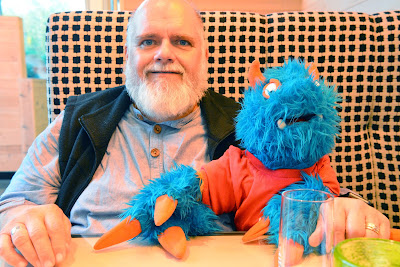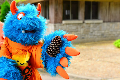 Mr. Guy, Mr. Scott F (Ms. Joni’s brother) and Mr. Scott G (Ms. Cindy’s Mr. Guy) don’t know how to play with sticks and string and they don’t have any interest in learning. The boys would all much rather play with trains. Since I am a boy, I spent my day with them. I think that a little blue and orange furry monster with sticks and string might be a disaster. I like it when Ms. Joni and The Lady work their magic with the string and I end up with sweaters and hats that are already made!