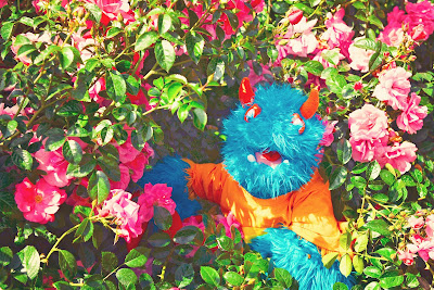 The last thing we saw at the museum was called a garden railroad. This was sort of like the little trains inside, but the train was bigger and ran outside in a real garden with pretty plants and flowers. Mr. Guy explained that trains come in all sizes, from tiny model ones all the way up to the great big real ones. He said there are even some that are little blue and orange monster sized like me! I asked him if we cold get one of those He said we would not have a place for one that big. That made me a little sad. I thought it would be fun to be the engineer on my very own train.