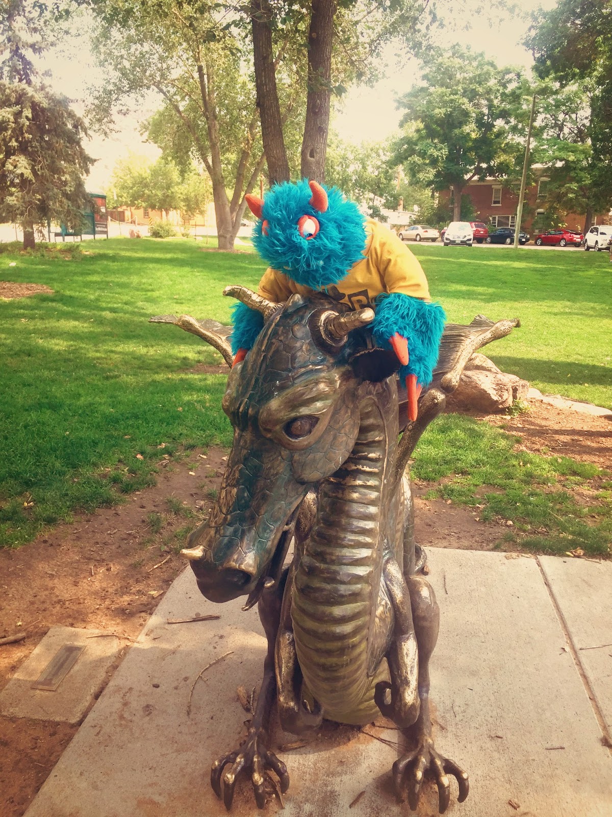 We also saw a dragon! Well, it was a statue too. I asked Mr. Guy if dragons and bears were friends and if there were dragons in the woods too. He assured me that I did not have to worry about meeting a real dragon.