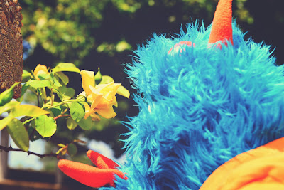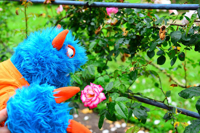 The last thing we saw at the museum was called a garden railroad. This was sort of like the little trains inside, but the train was bigger and ran outside in a real garden with pretty plants and flowers. Mr. Guy explained that trains come in all sizes, from tiny model ones all the way up to the great big real ones. He said there are even some that are little blue and orange monster sized like me! I asked him if we cold get one of those He said we would not have a place for one that big. That made me a little sad. I thought it would be fun to be the engineer on my very own train.