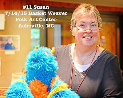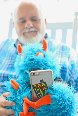 As usually, Mr. Guy was carrying me when we walked into the hotel. Several people called out, “Look! It’s Blueper B!” I wasn’t sure who any of these people were or how they knew me. Mr. Guy said that he bet that they read my blog and that’s how they knew who I was. I felt kind of like a monster star. I got to talk to people, shake hands with them, and have my picture taken with them! The first one is with Joni. She and The Lady are good friends. They have lots of things in common like this thing they do where they tie string together with two sticks. Somehow they make the string turn into objects like hats and socks. They call it knitting. I think it’s some kind of magic trick. Maybe they could knit me a magic T-shirt.