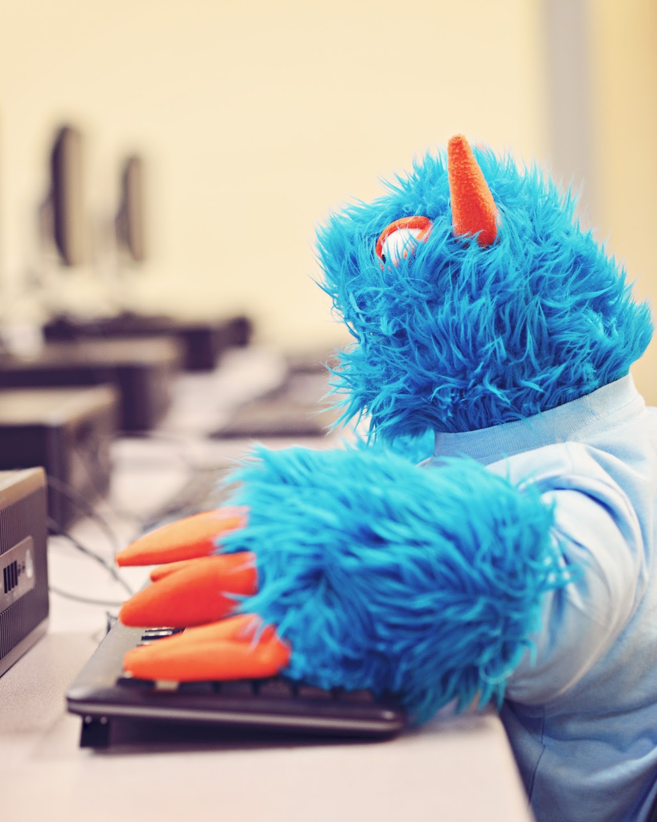 I asked Mr. Guy if I could come to school with him and be in his classes. I don’t really want to learn about spreading data and base sheets or whatever is that he is teaching about, but I am going to miss everybody when they go back to school. The dogs, cat, and I are going to be at home watching HGTV and talk shows five days a week. There is only so much of that that a little furry blue and orange monster can take. And the dogs are not very good about fixing me lunch. I’m sure that we will all adjust.